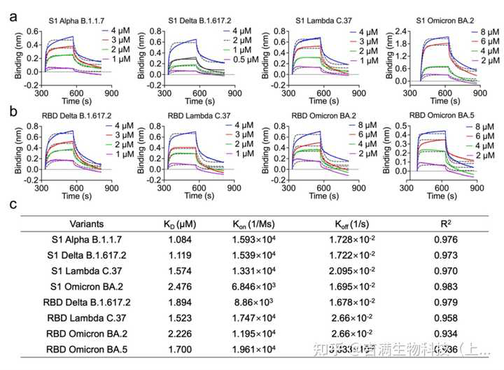 Fig.6 Nb-H6与多种突变体S1或RBD蛋白的亲和作用