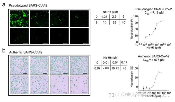 Fig.5 Nb-H6在体外中和了SARS-CoV-2野生型病毒的感染