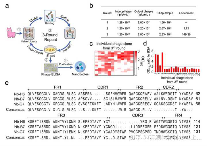作者使用一个羊驼的天然纳米抗体噬菌体文库来筛选抗SARS-CoV-2的S1蛋白的候选纳米抗体,并用ELISA、生物膜干涉法、竞争ELISA等方法对其进行鉴定,证明它与SARS-CoV-2的S1和RBD结构域以及三种突变体的具有高亲和力,并且具有良好的热稳定性和pH稳定性,能有效地阻止S1或RBD与ACE2的相互作用。